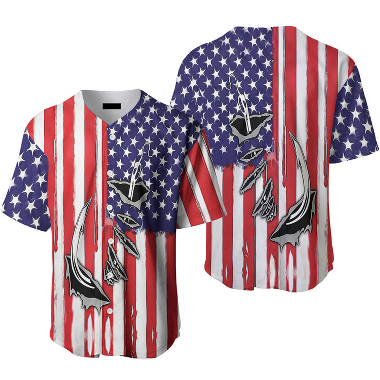 Fish Hook American Flag Baseball Jersey , Idea Gift for Men & Women