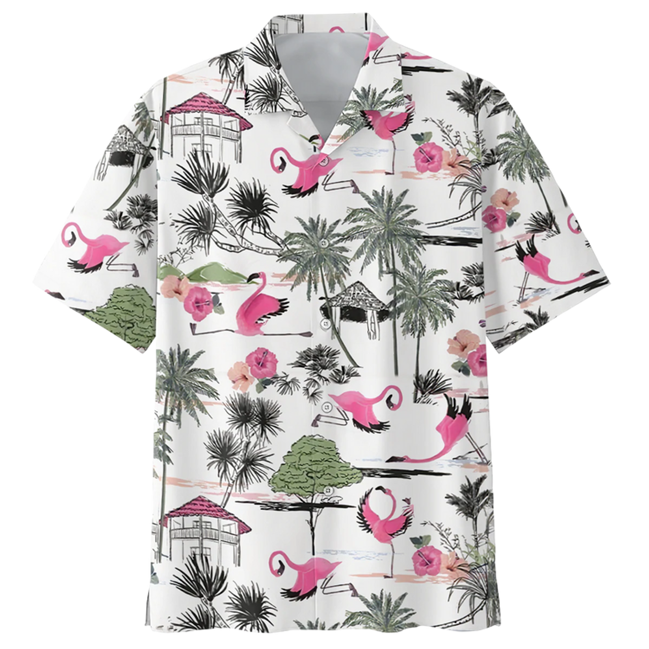 Flamingo Tropical Hawaiian Shirt, Flowers Flamingo Aloha Shirt, Men's Hawaiian Shirt