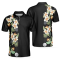 Floral Golf Club And Ball Men Polo Shirt, Wild Floral And Leaves Golfing Polo Shirt, Tropical Golf Shirt For Men