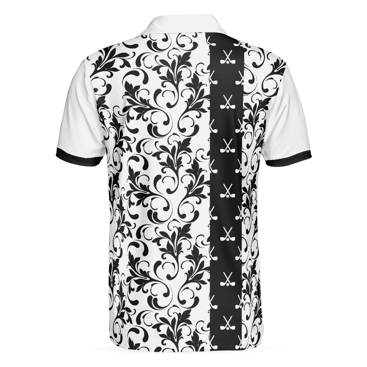 Floral Golf Pattern In White Men Polo Shirt, Black And White Polo Shirt, Floral Golf Shirt For Men