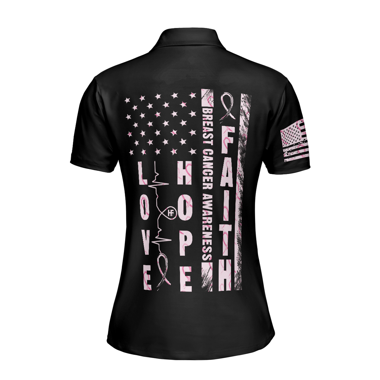 Flower America Flag Cancer Awareness Women Polo Shirt, Faith Hope Love Cancer Awareness Short Sleeve Polo Shirt, Support Gift For Cancer Survivors