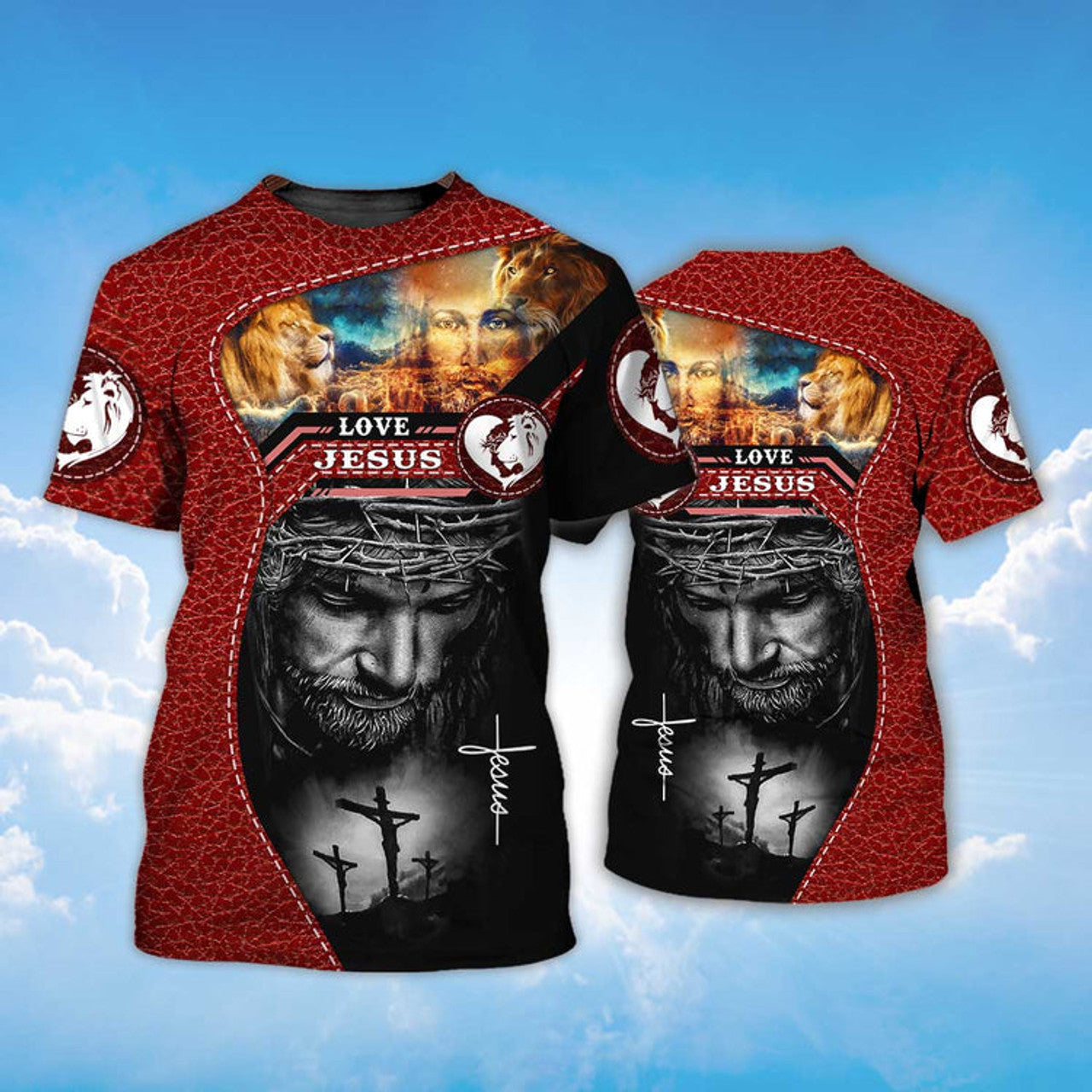 FUNSTUFFPRINT 3D All Over Print Love Jesus Tee Shirt Men Women Red Leather Pattern 3D T-shirt