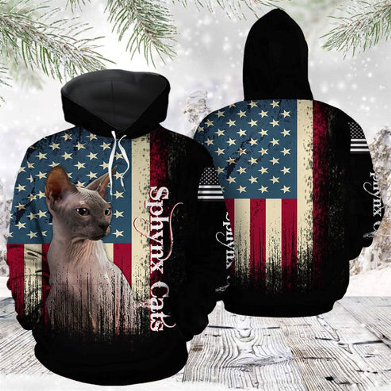 FUNSTUFFPRINT 3D American Sphynx Cat All Over 3D Hoodie and Zip Hoodie