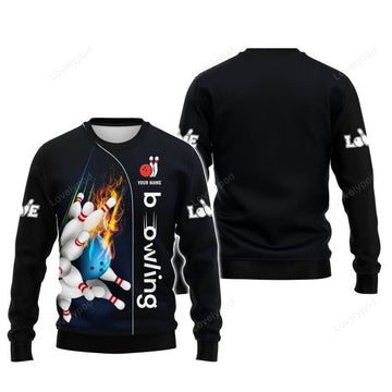 FUNSTUFFPRINT 3D Bowling 3D Ugly sweater, Bowling Personalized Name shirt, Gift For Bowling Lovers Ugly Sweater