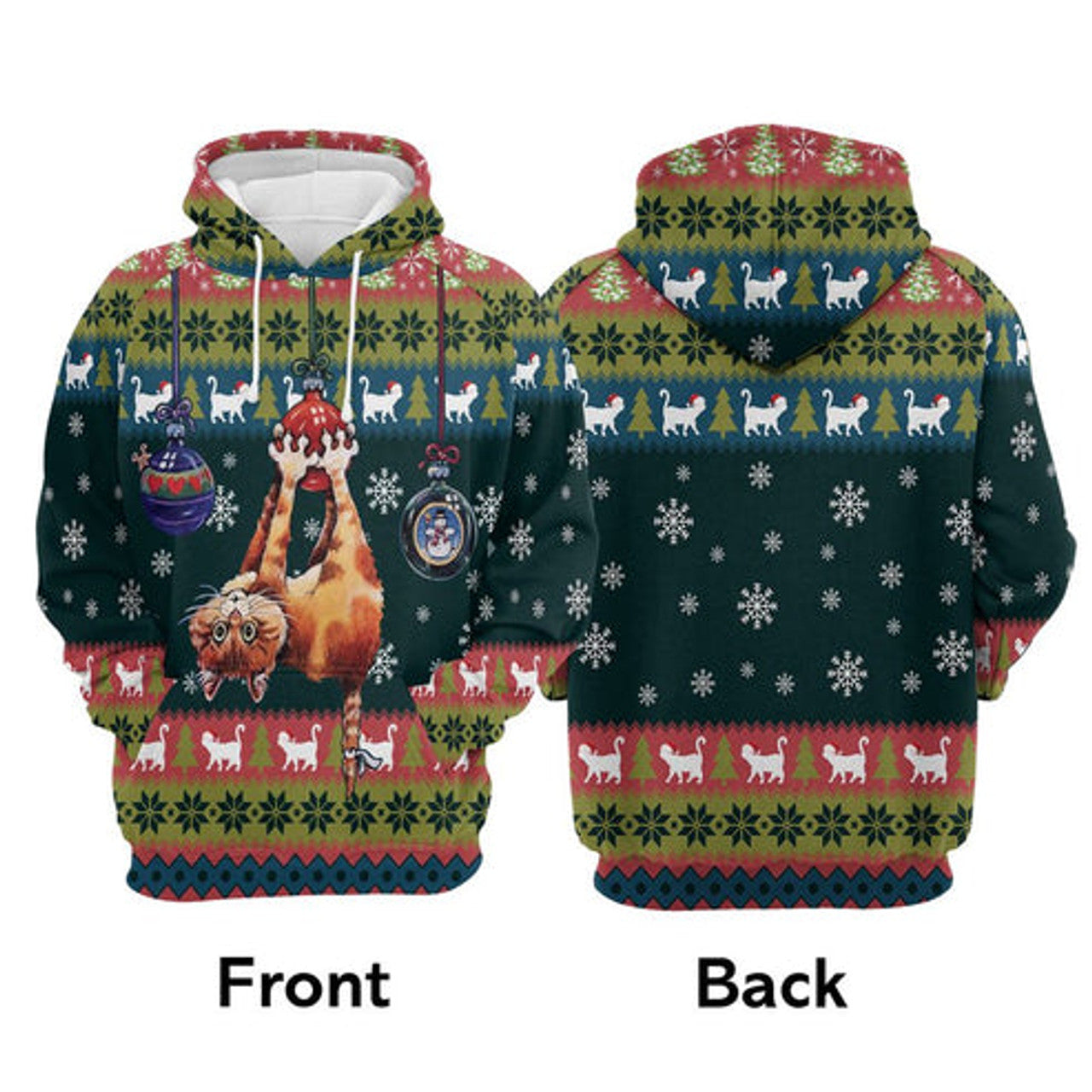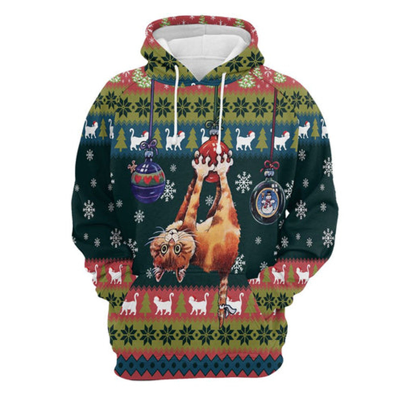 FUNSTUFFPRINT 3D Cat Hanging On Christmas Tree All Over 3D Hoodie and Zip Hoodie