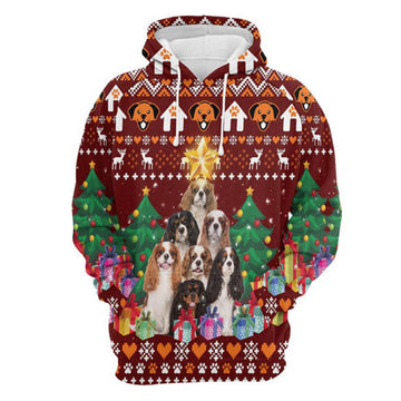 FUNSTUFFPRINT 3D Cavalier King Charles Spaniel Christmas Tree All Over 3D Hoodie and Zip Hoodie