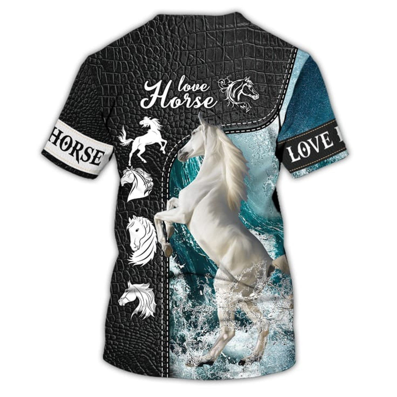 FUNSTUFFPRINT 3D Full Print Love Horse T-Shirt, Cool T-Shirt For Horse Lovers, Horse Shirt, Horse Gift 3D T-shirt