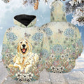 FUNSTUFFPRINT 3D Golden Retriever Flower All Over 3D Hoodie and Zip Hoodie