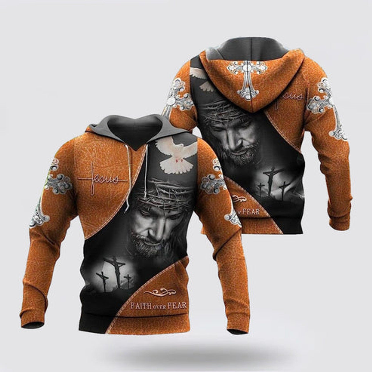 FUNSTUFFPRINT 3D Jesus Blessing Faith Over Fear 3D Hoodie and Zip Hoodie
