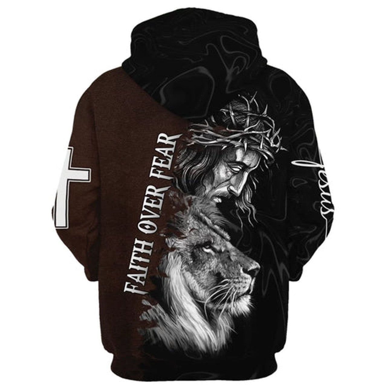 FUNSTUFFPRINT 3D Jesus Crown Of Thorns And Lion 3D Hoodie and Zip Hoodie