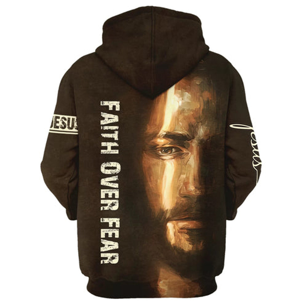 FUNSTUFFPRINT 3D Jesus Faith Over Fear 3D Hoodie and Zip Hoodie