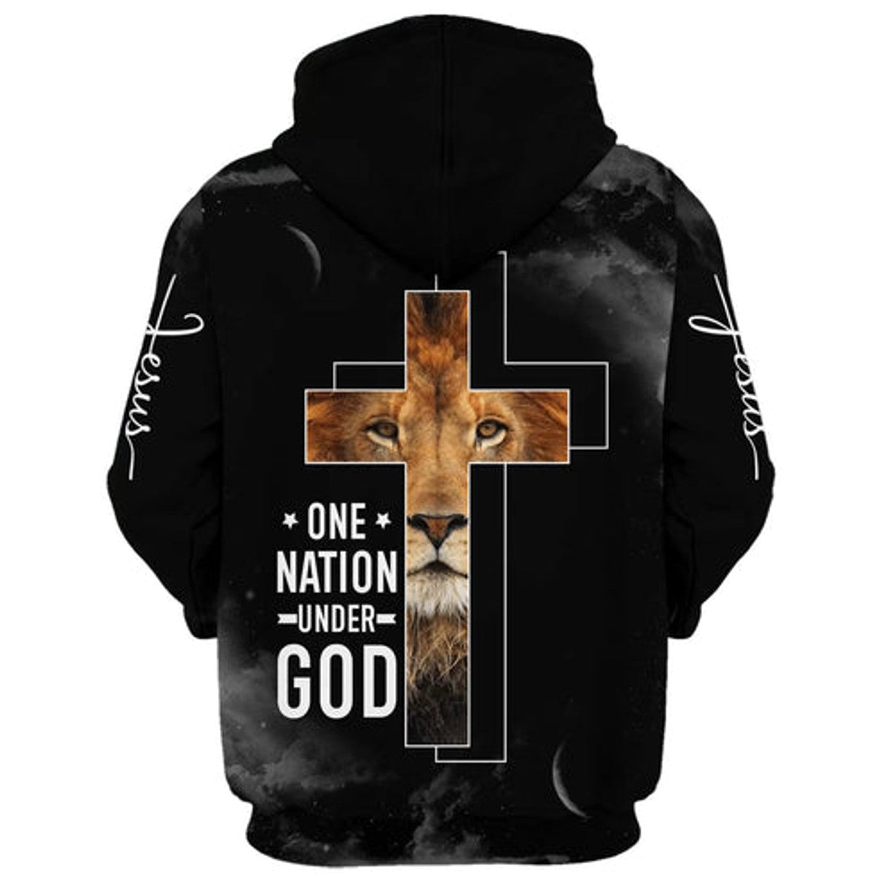 FUNSTUFFPRINT 3D Jesus The Lion Of Judah One Nation Under God 3D Hoodie and Zip Hoodie