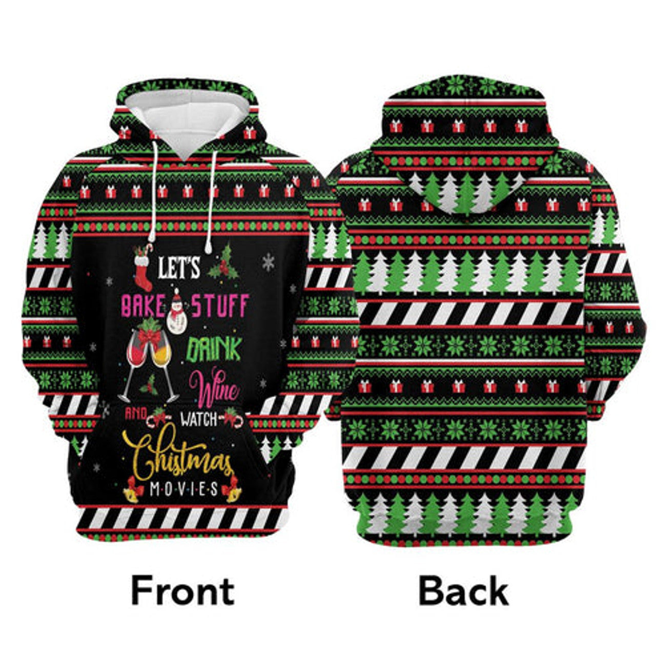 FUNSTUFFPRINT 3D Let's Bake Stuff Drink Wine And Watch Christmas Movies All Over 3D Hoodie and Zip Hoodie
