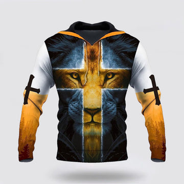 FUNSTUFFPRINT 3D Lion Yellow Cross Jesus Is My God 3D Hoodie and Zip Hoodie