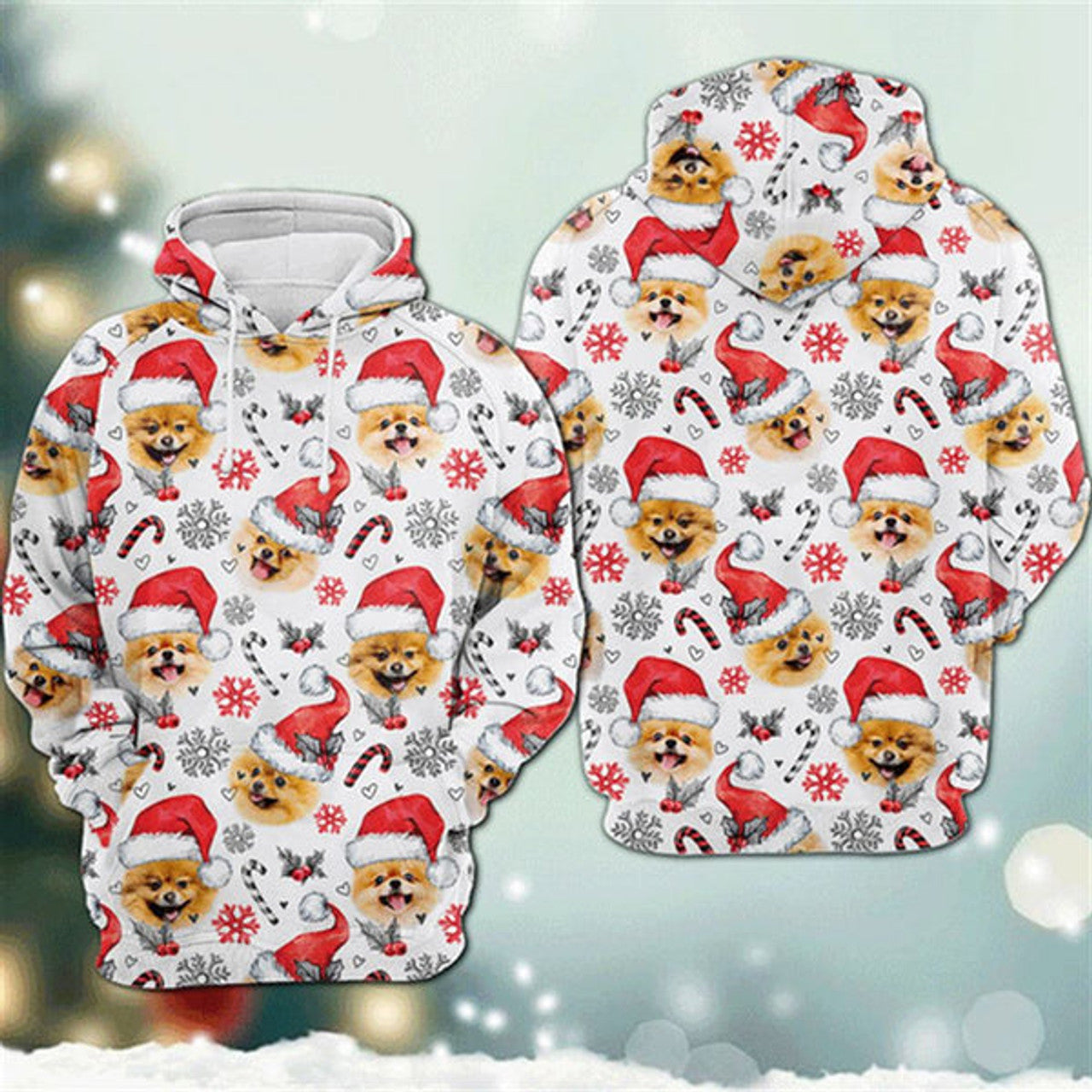 FUNSTUFFPRINT 3D Pomeranian Dog Christmas Decor All Over 3D Hoodie and Zip Hoodie