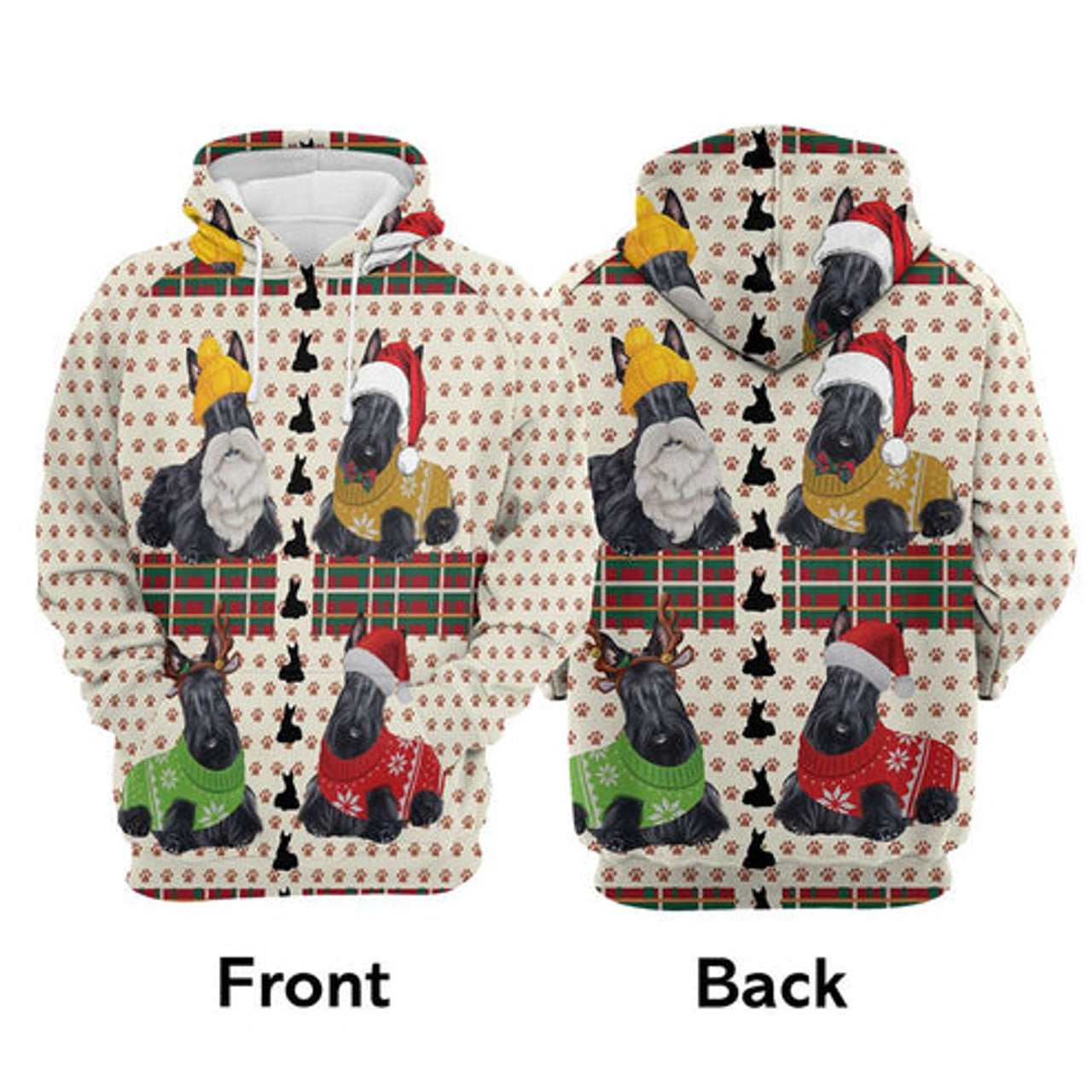 FUNSTUFFPRINT 3D Scottish Terrier Christmas All Over 3D Hoodie and Zip Hoodie