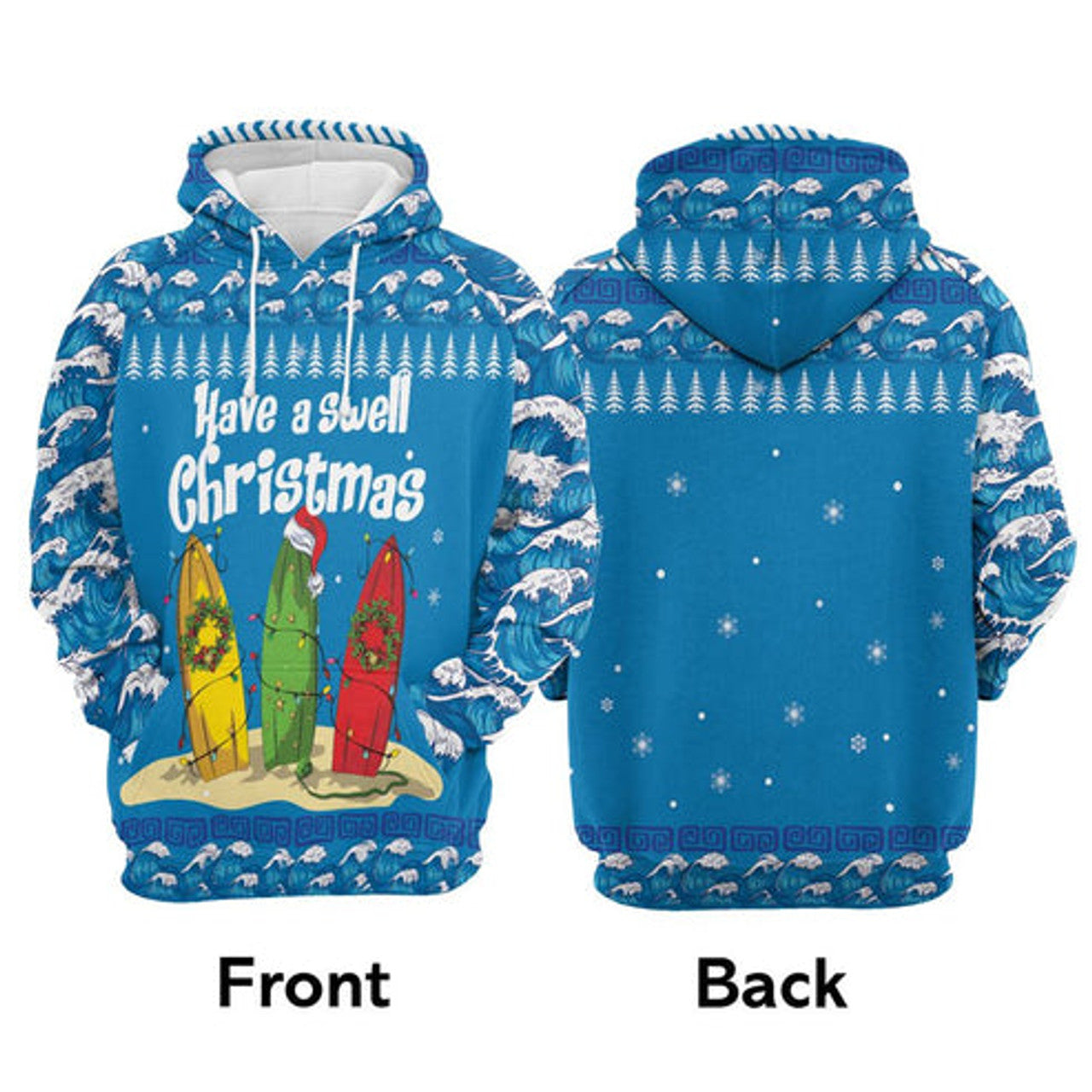 FUNSTUFFPRINT 3D Surfer Swell Christmas All Over 3D Hoodie and Zip Hoodie