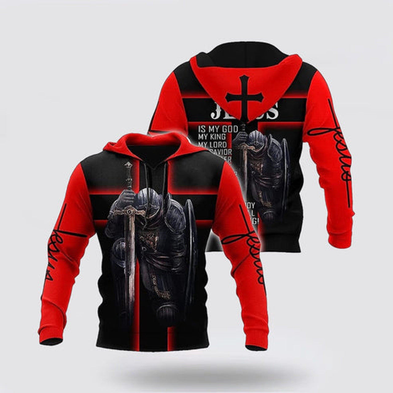 FUNSTUFFPRINT 3D Warrior Jesus My God My King My Lord 3D Hoodie and Zip Hoodie