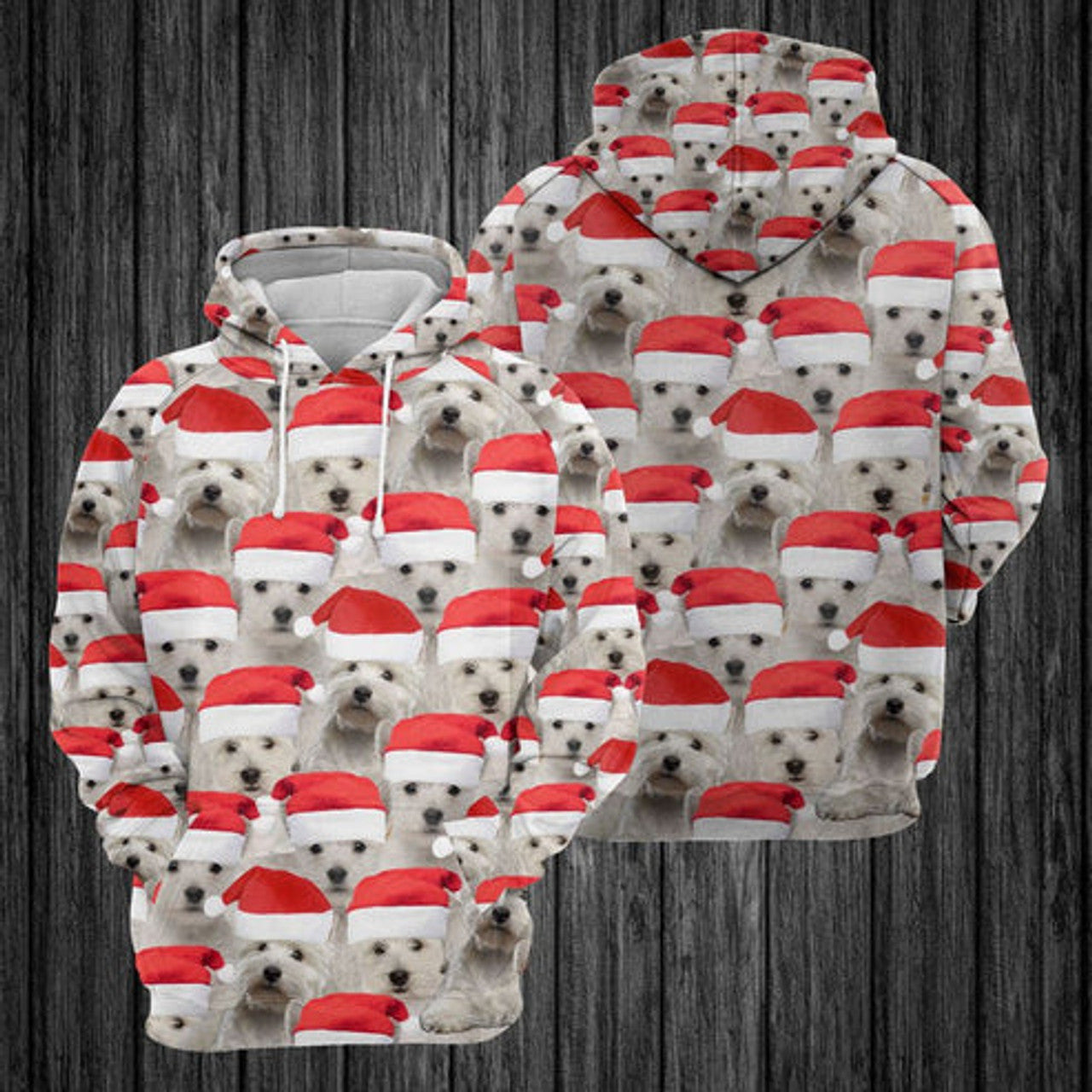 FUNSTUFFPRINT 3D West Highland White Terrier Christmas Group All Over 3D Hoodie and Zip Hoodie