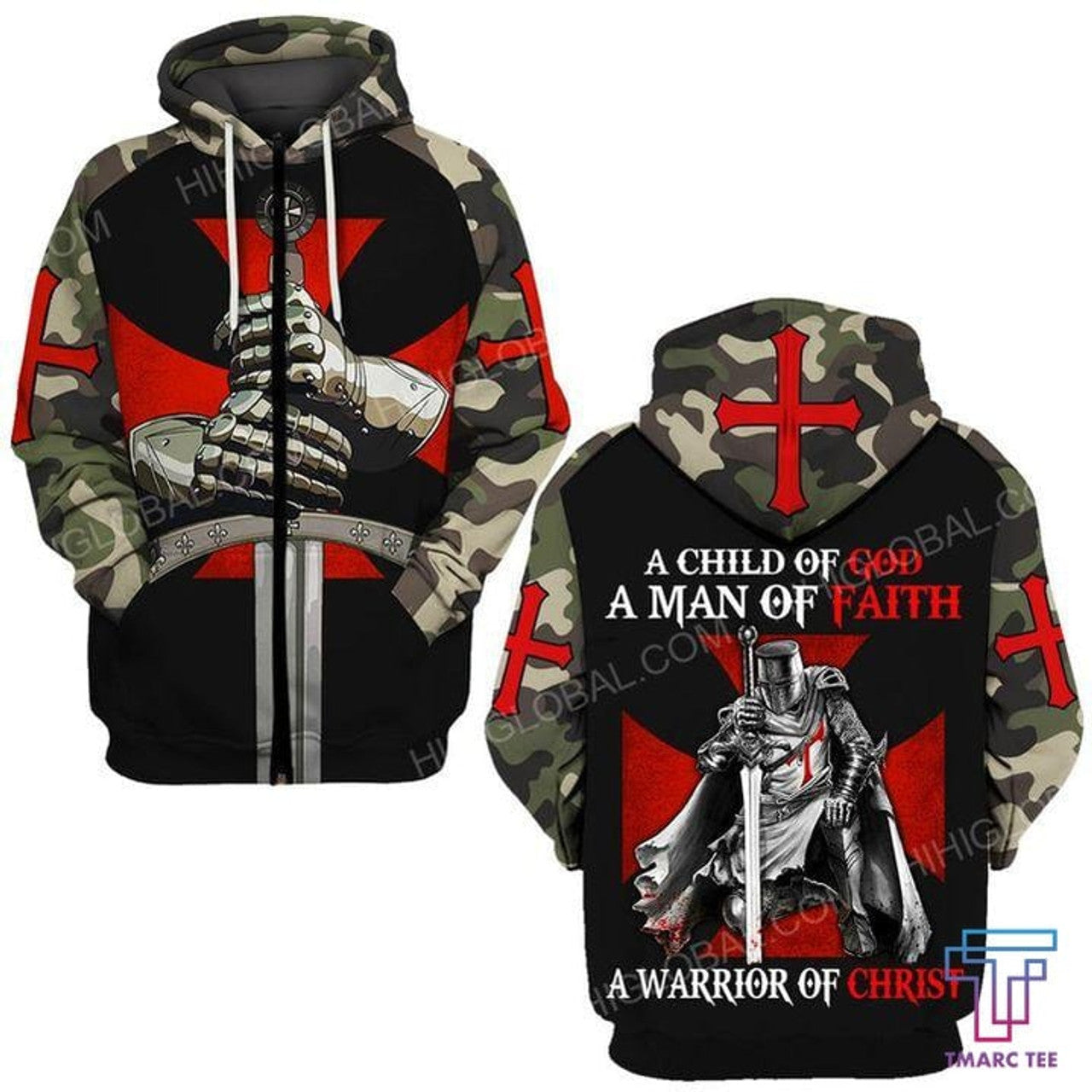 FUNSTUFFPRINT A CHILD OF GOD A MAN OF FAITH A WARRIOR OF CHRIST 3D Hoodie and Zip Hoodie