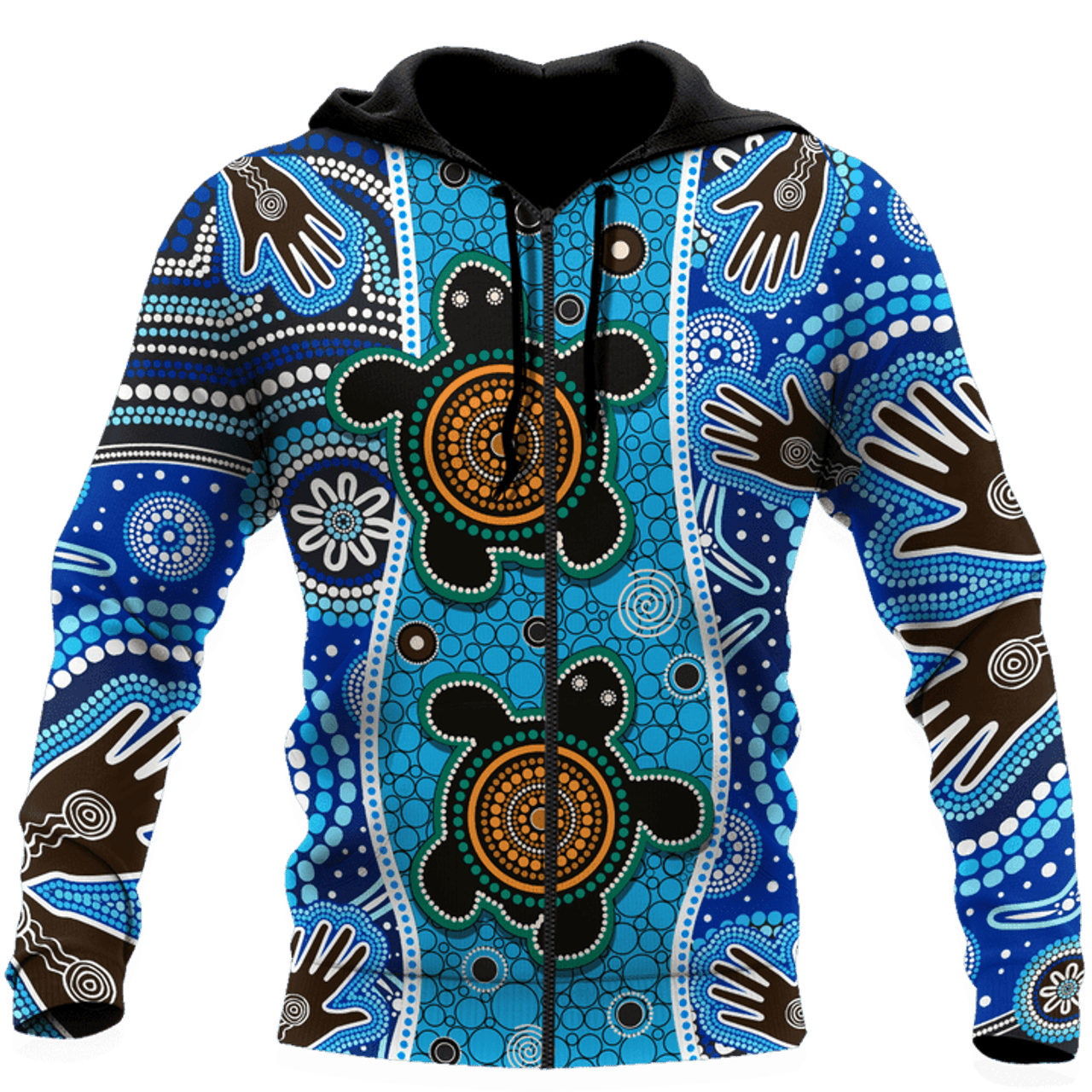 FUNSTUFFPRINT Aboriginal Indigenous Turtle Blue Hand Dot Naidoc Week Unisex 3D Hoodie and Zip Hoodie