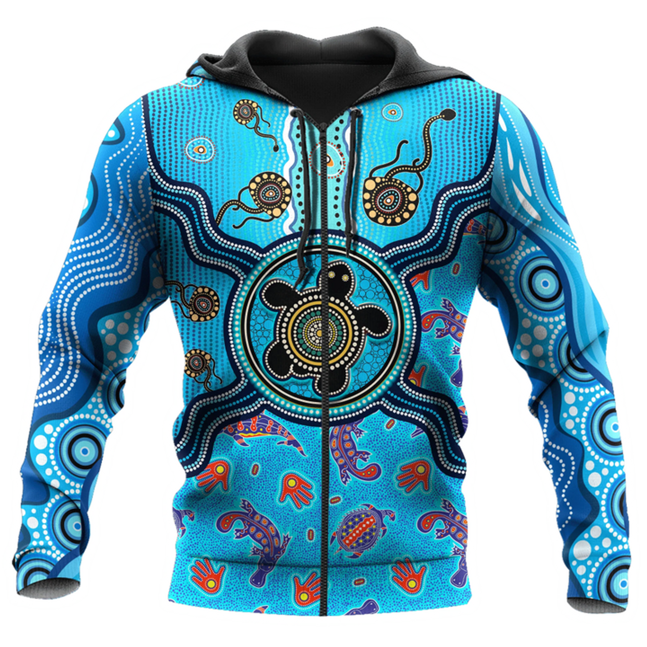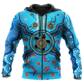 FUNSTUFFPRINT Aboriginal Indigenous Turtle Blue Sea Animal 3D Hoodie and Zip Hoodie