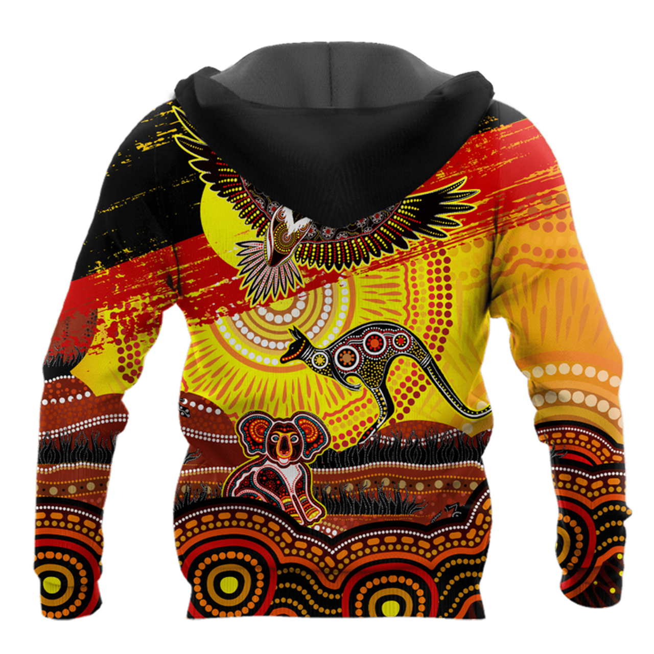 FUNSTUFFPRINT Aboriginal Naidoc Week Indigenous Flag Distressed Sun Eagle Kangaroo Koala Unisex 3D Hoodie and Zip Hoodie