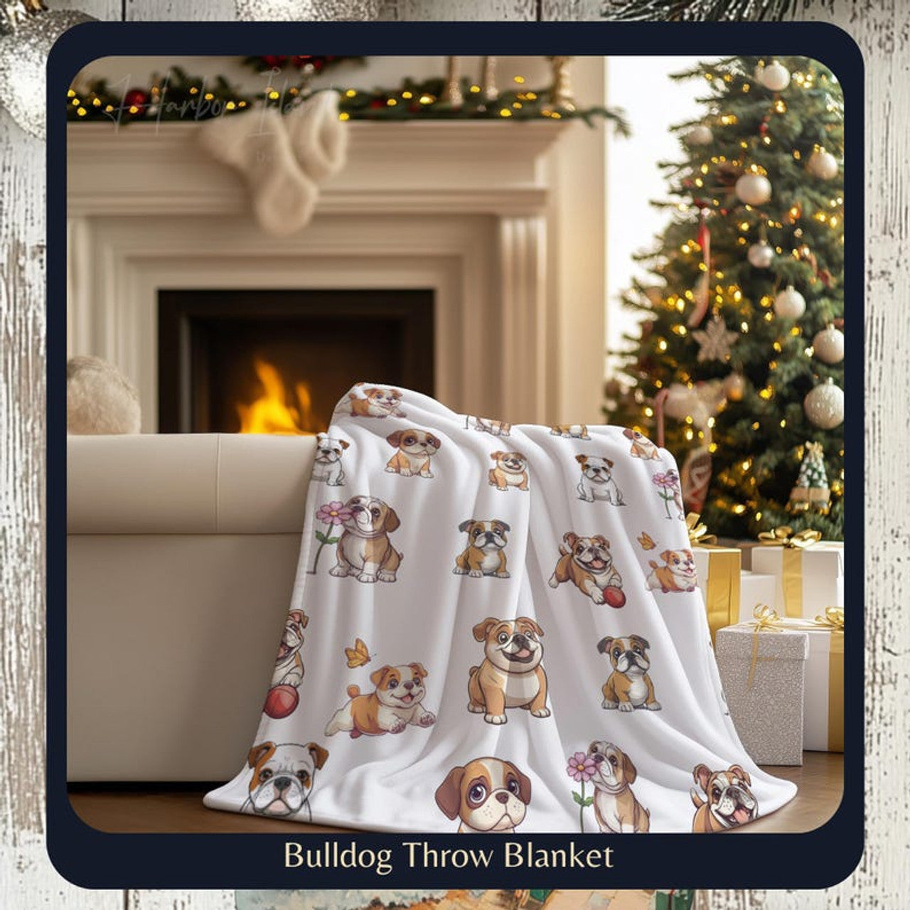 FUNSTUFFPRINT Adorable Bulldog Puppy Blanket, Cozy Pet Lovers Throw Blanket, Cute Animal Companions, Perfect Gift for Pet Owners