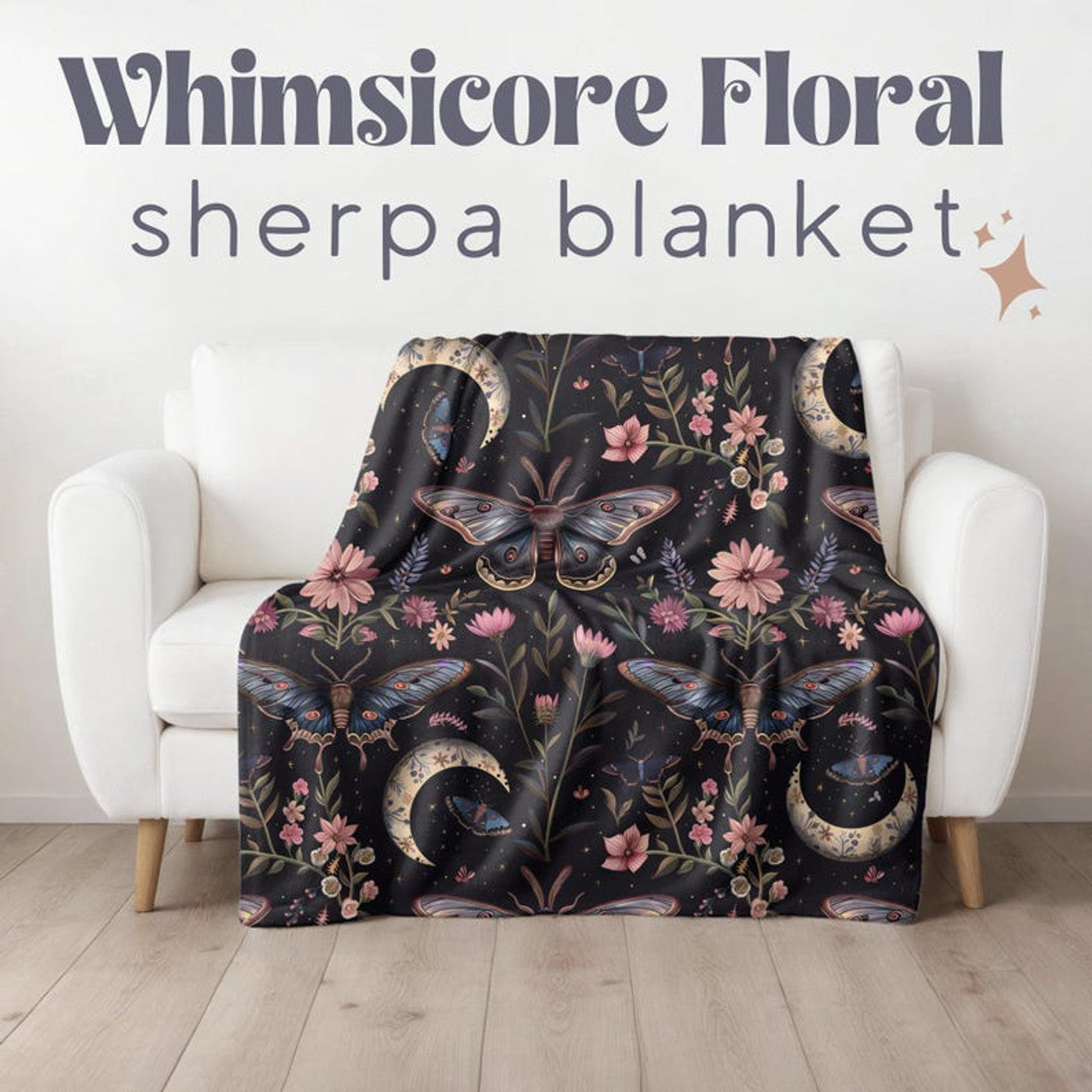 FUNSTUFFPRINT Aesthetic Botanical Whimsicore Forestcore Fleece Sherpa Blanket, Soft Throw for Halloween, Moon Phases Lunar Moth Witchy, Gothic Gifts