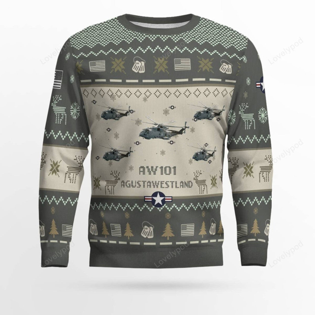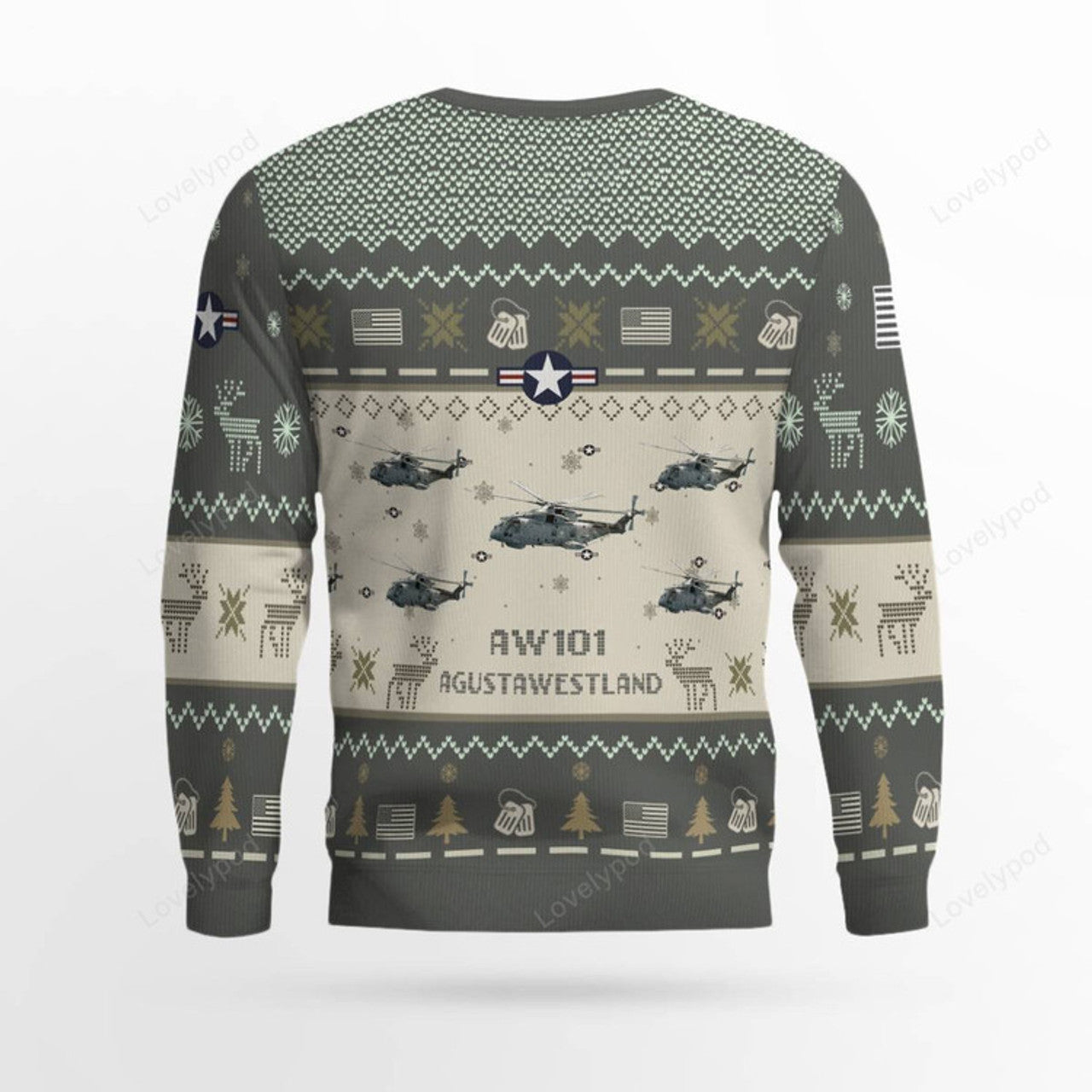 FUNSTUFFPRINT AgustaWestland AW101_Aircraft Ugly Sweater, Ugly Sweater Christmas Shirt for Men Dad Veteran Ugly Sweater