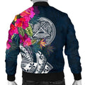 FUNSTUFFPRINT American Samoa Men's Bomber Jacket - Polynesian Hibiscus with Summer Vibes - 3D Bomber Jacket