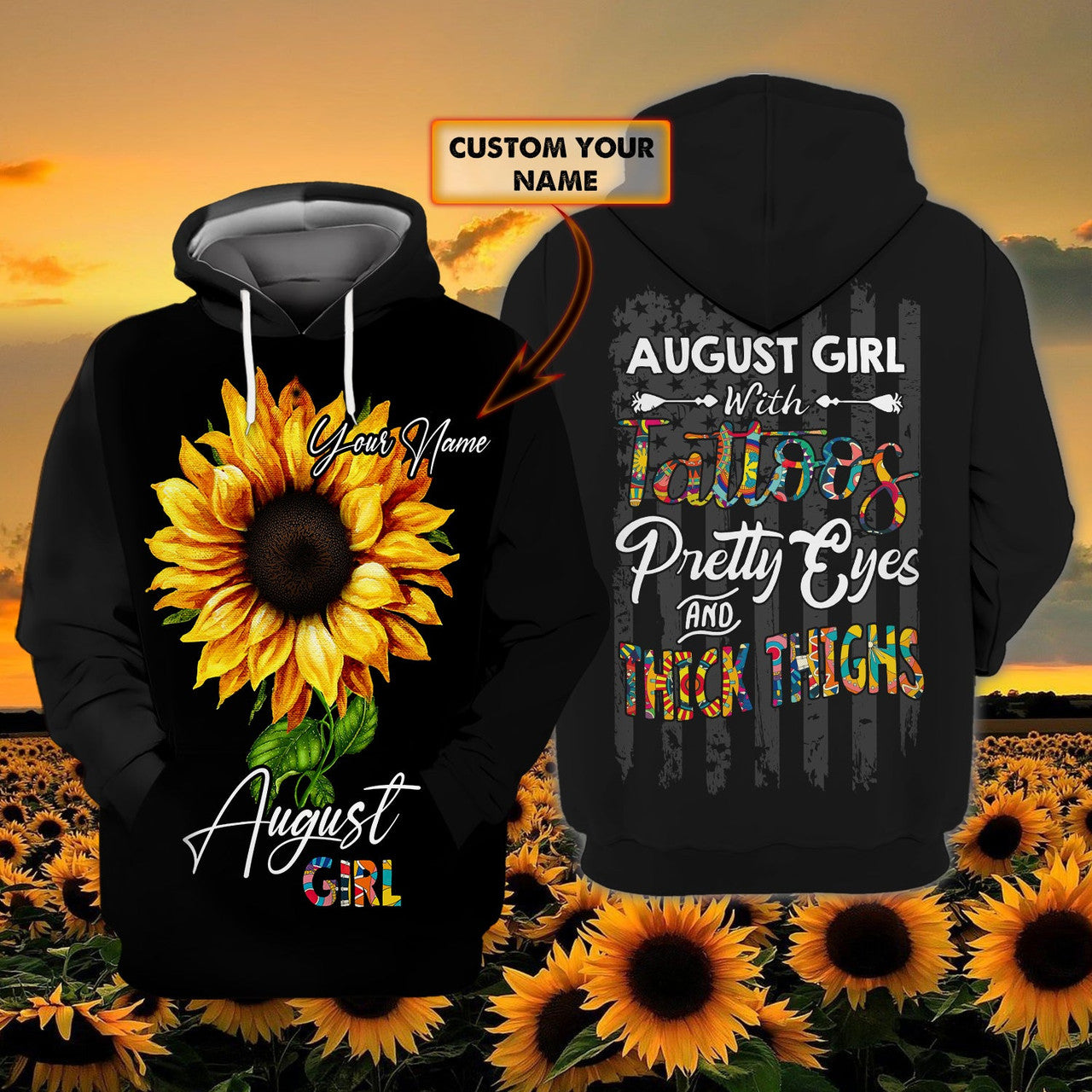 FUNSTUFFPRINT August Girls with Tattoos Pretty Eyes and Thick Thighs - Personalized Name 3D Hoodie and Zip Hoodie