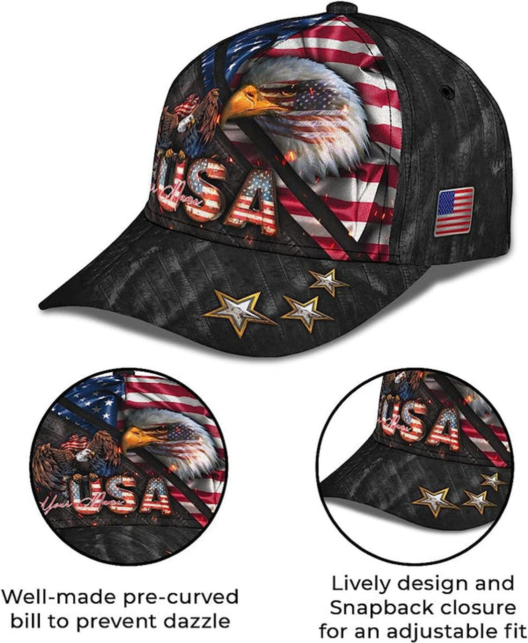 FUNSTUFFPRINT Bald Eagle And Us Flag For Veteran Military Custom Name All Over Print Baseball Cap - Christian Hats For Men Women
