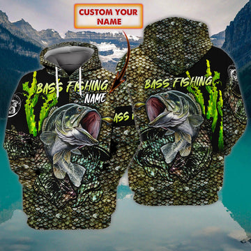 FUNSTUFFPRINT Bass Fishing 05- Personalized Name 3D Hoodie and Zip Hoodie
