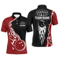 FUNSTUFFPRINT Black and Red Flame Bowling Polo, Custom Team Bowling Polo Shirt Size S-5XL