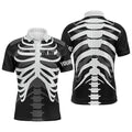 FUNSTUFFPRINT Black and white Mens golf polo shirts custom golf heartbeat Skeleton Halloween golf attire for men Polo Shirt Size S-5XL