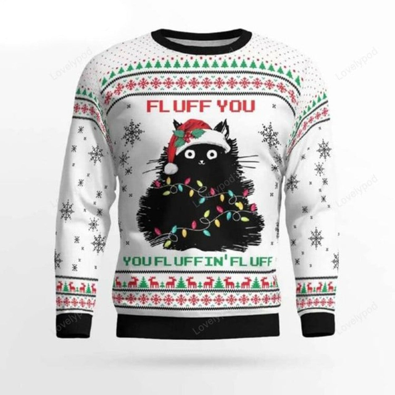 FUNSTUFFPRINT Black Cat Fluff You Ugly Christmas Sweater for men and women, Black Cat shirts, Ugly Sweater Christmas Gift Ugly Sweater