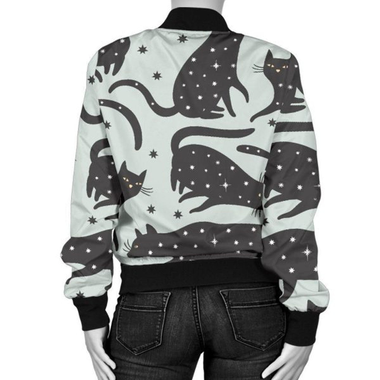 FUNSTUFFPRINT Black Cat Print Pattern Women Casual 3D Bomber Jacket