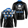 FUNSTUFFPRINT Black Red Argyle Pattern Bowling Skull Custom Bowling Long Sleeve Polo Shirts For Men, Bowling Jerseys