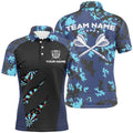 FUNSTUFFPRINT Blue Camo Darts Polo, Custom Camouflage Dart Polo Shirt Size S-5XL