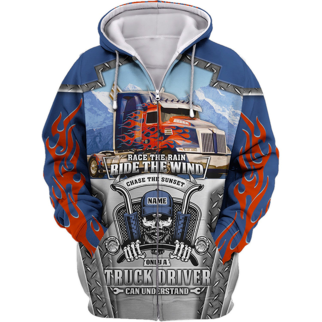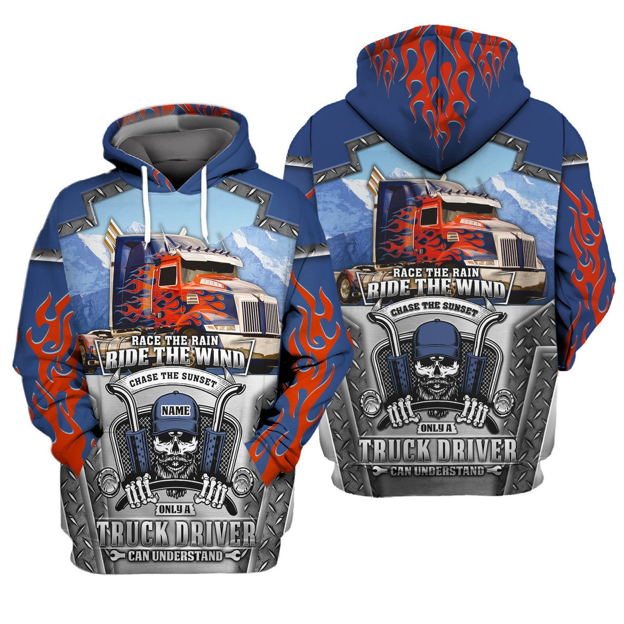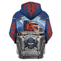FUNSTUFFPRINT Blue & Red Fire Trucker 3D Hoodie and Zip Hoodie
