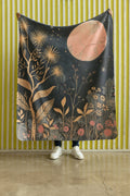 FUNSTUFFPRINT Boho Celestial Moon & Stars Fleece Sherpa Throw Blanket, Floral Blanket, Moon Tapestry Aesthetic Blanket, Home Decor Gift, Housewarming Gift