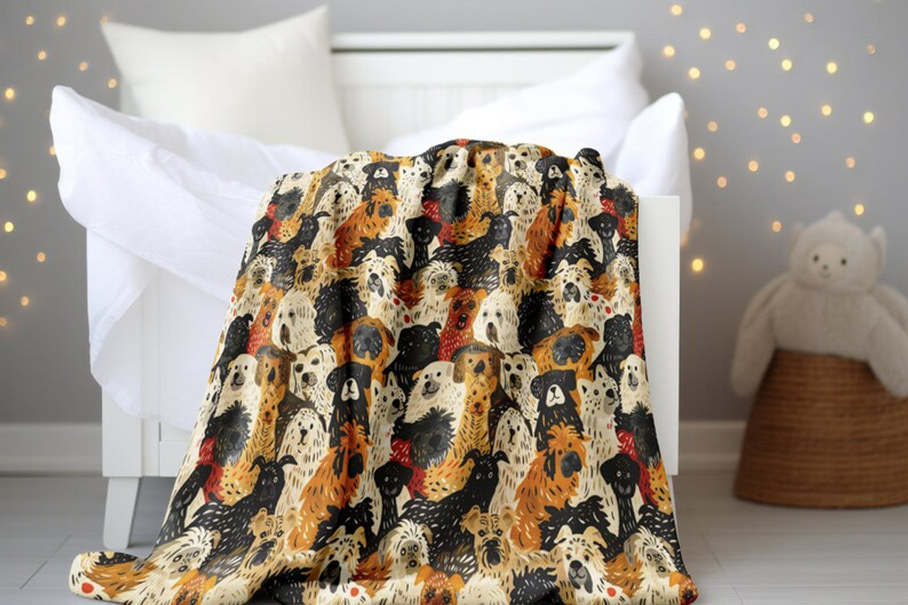FUNSTUFFPRINT Boho Dogs Baby Blanket, Baby Boy Blanket, Baby Blanket, Velveteen Baby Swaddle, Sherpa Blanket, Childrens Kids Blanket, New Mom Gift