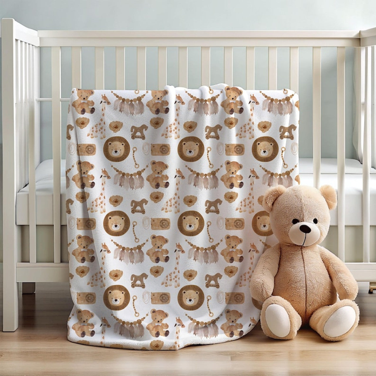 FUNSTUFFPRINT boho fleece blanket for baby, safari animal nursery decor, cute christmas gift for new mom, baby shower gift for boy, newborn photo prop