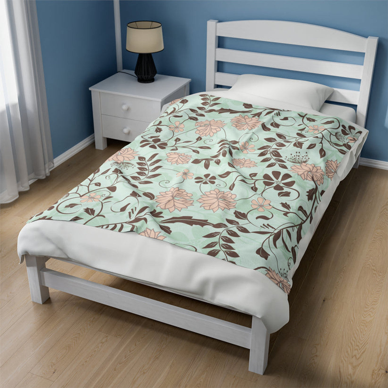 FUNSTUFFPRINT Boho Floral Velveteen Plush Blanket