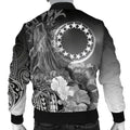 FUNSTUFFPRINT Bomber Jacket Cook Islands Custom Personalised - Humpback Whale with Tropical Flowers (White)- 3D Bomber Jacket