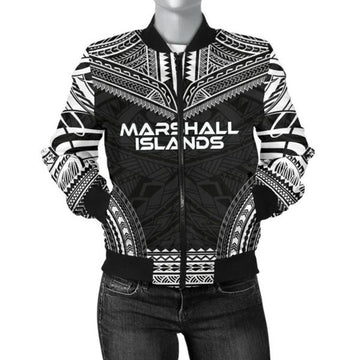 FUNSTUFFPRINT Bomber Jacket Marshall Islands Polynesian Chief - Black Version 3D Bomber Jacket