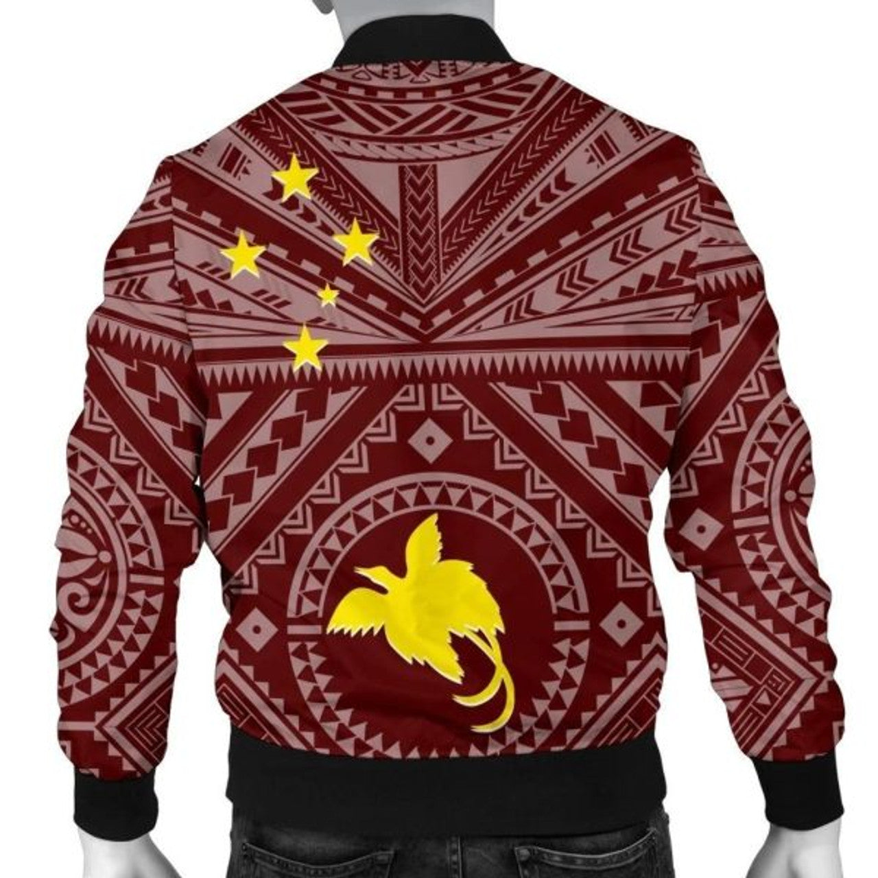 FUNSTUFFPRINT Bomber Jacket Papua New Guinea Personalised - Flag With Polynesian Patterns (Black) 3D Bomber Jacket