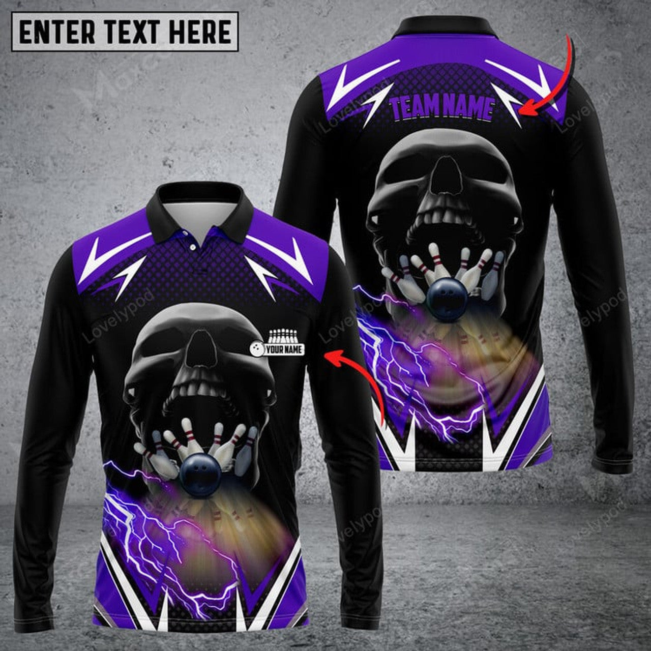 FUNSTUFFPRINT Bowling And Pins Lightning Into Skull Multicolor Option, Customized Name Long Sleeve 3D Shirt