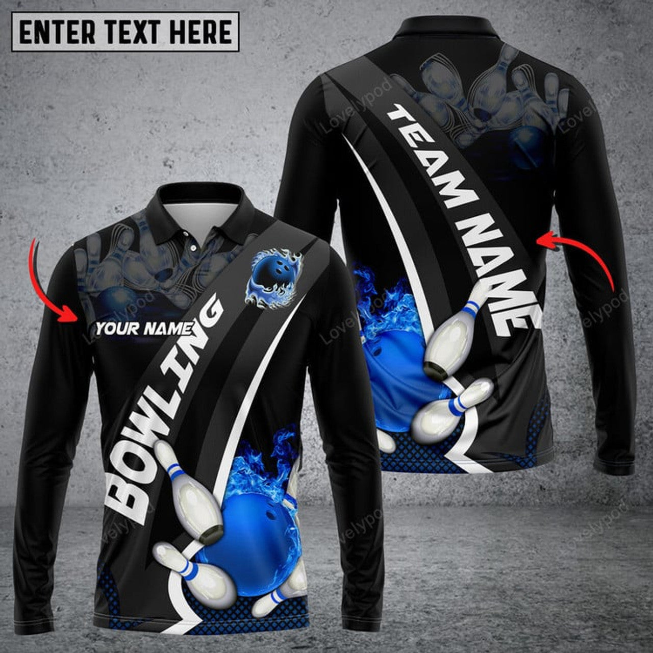 FUNSTUFFPRINT Bowling And Pins Plame Premium Multicolor Option Personalized Name Long Sleeve 3D Shirt